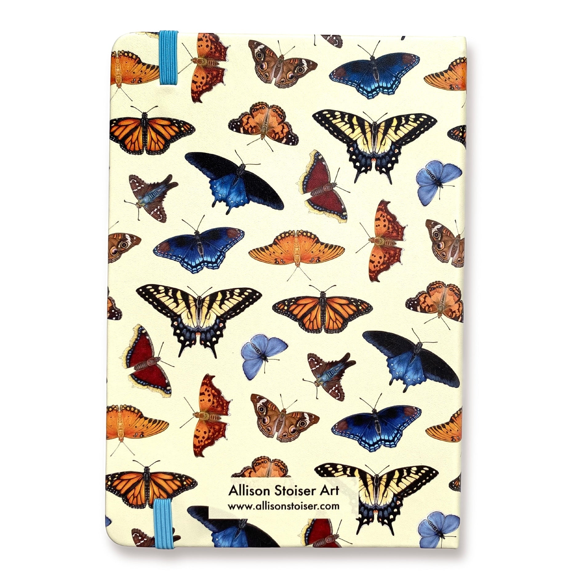 This A5 hardcover journal features a pattern of my butterfly illustrations on a parchment-colored background. Butterflies featured include the eastern tiger swallowtail, pipevine swallowtail, red-spotted purple, gulf fritillary, common buckeye, American painted lady, long-tailed skipper, spring azure, monarch, mourning cloak, and question mark.